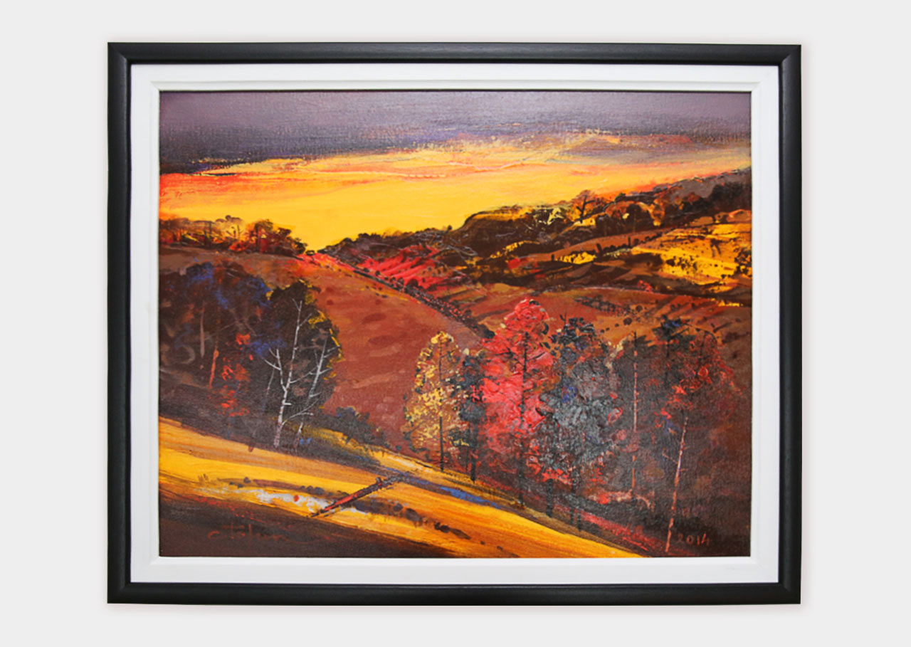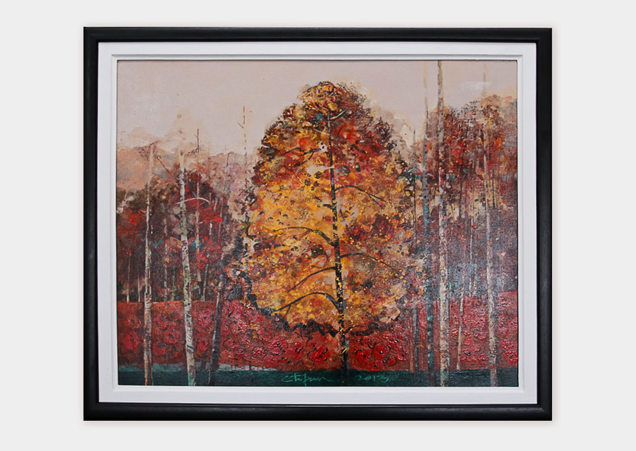 Sheer love of life bursts from the paintings of the artist Constantin Tofan. Wild and mysterious, warm and passionate they encounter us. Tofan’s paintings transport his creative dynamic and ignite a fire in the eye of the viewer. The dramatic appearance of the luminous birch at sunset entwists the Romanian soul with the infinity of heaven.